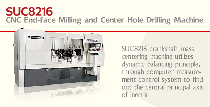 CNC end-face milling and center hole drilling machine is widely applied to milling end faces and drilling center holes of crankshaft components and machining excircles in automobile, tractor and motor industries etc. The above-mentioned processes can be finished in one setting. The special chucks and tools can be designed and selected according to component dimension and roughcast shape of customers. Stepless spindle speed is controlled by frequency adjustable motor. NC control system is integrated in electrical system, and hydraulic system adopts control system consisting of overlap valves. Drilling center holes is realized by servomotor driven ball screw. The machine is guarded completely, with interlocking switch on the sliding door, to guarantee the safety of human beings and the machine.